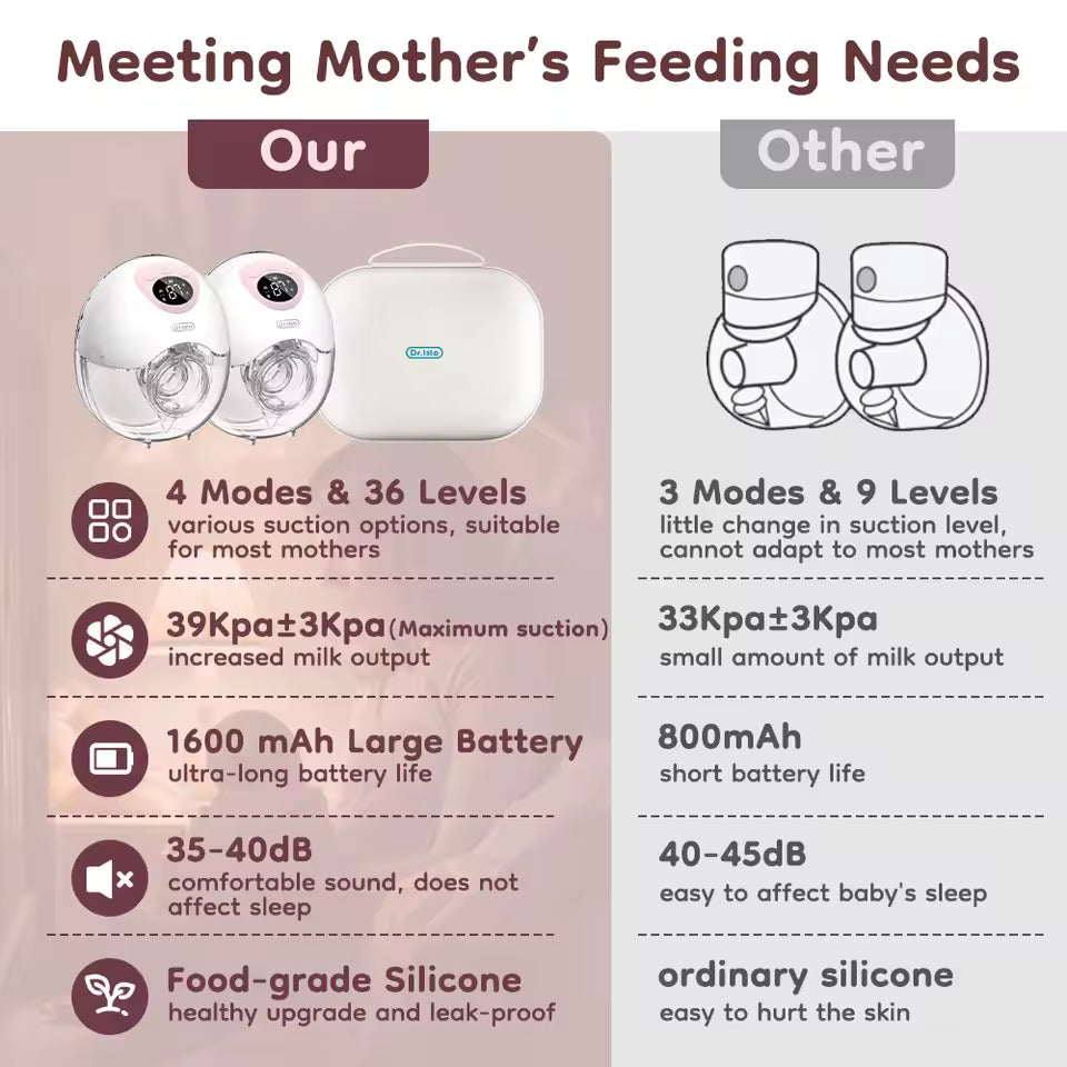💖This automatic breast pump has 4 modes and 36 speeds. It stimulates the flow of breast milk through massage, and then produces rhythmic movements to simulate the baby's sucking action and quickly suck out breast milk.